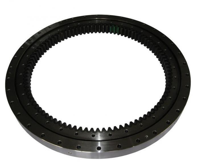 單排交叉滾柱式回轉支承,由兩個座圈組成,結構緊湊、重量輕、制造精度高,裝配間隙小,對安裝精度要求高,滾柱為1:1交叉排列,能同時承受軸向力,傾翻力矩和較大的徑向力,被廣泛地用于起重運輸、工程機械和軍工產品上。